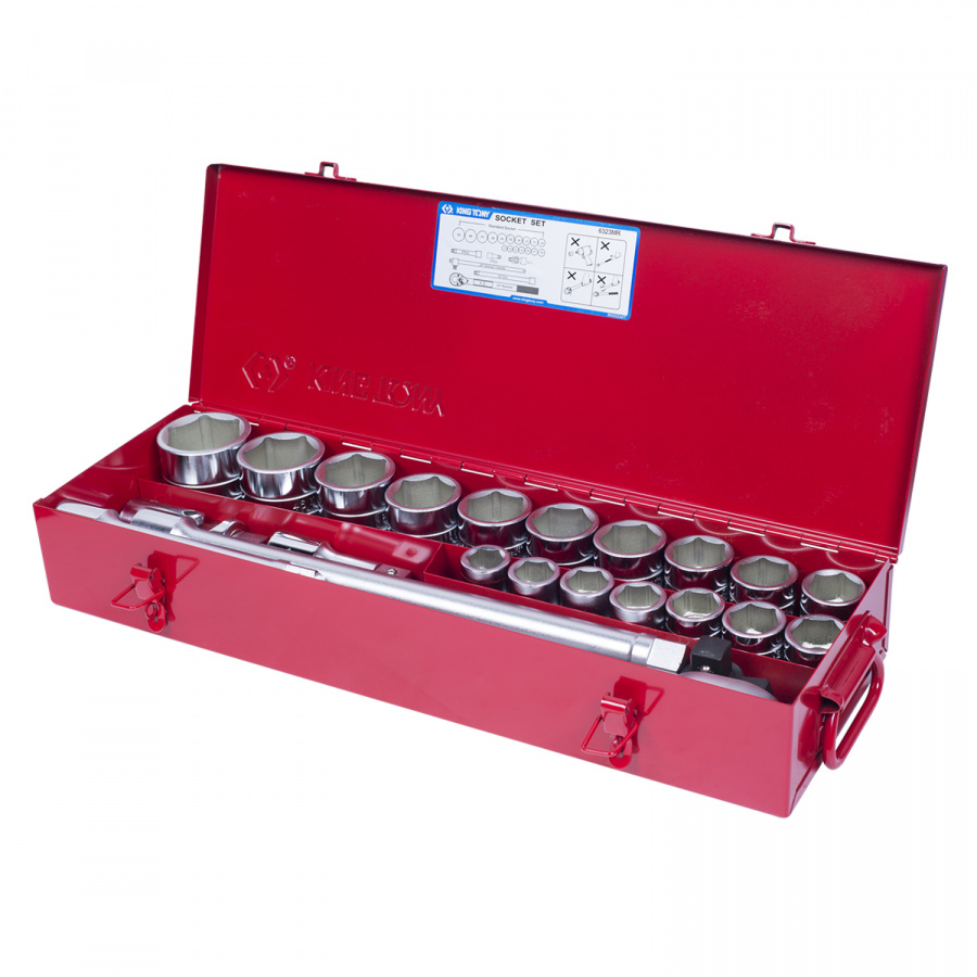 Набор торцевых головок с принадлежностями 3/4", шестигранные, 21-50 мм, 23 предмета KING TONY 6323MR