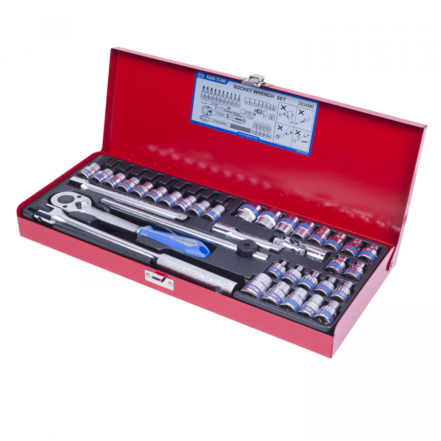 - Набор торцевых головок с принадлежностями 3/8", двенадцатигранные, 6-19 мм 36 предметов KING TONY 30