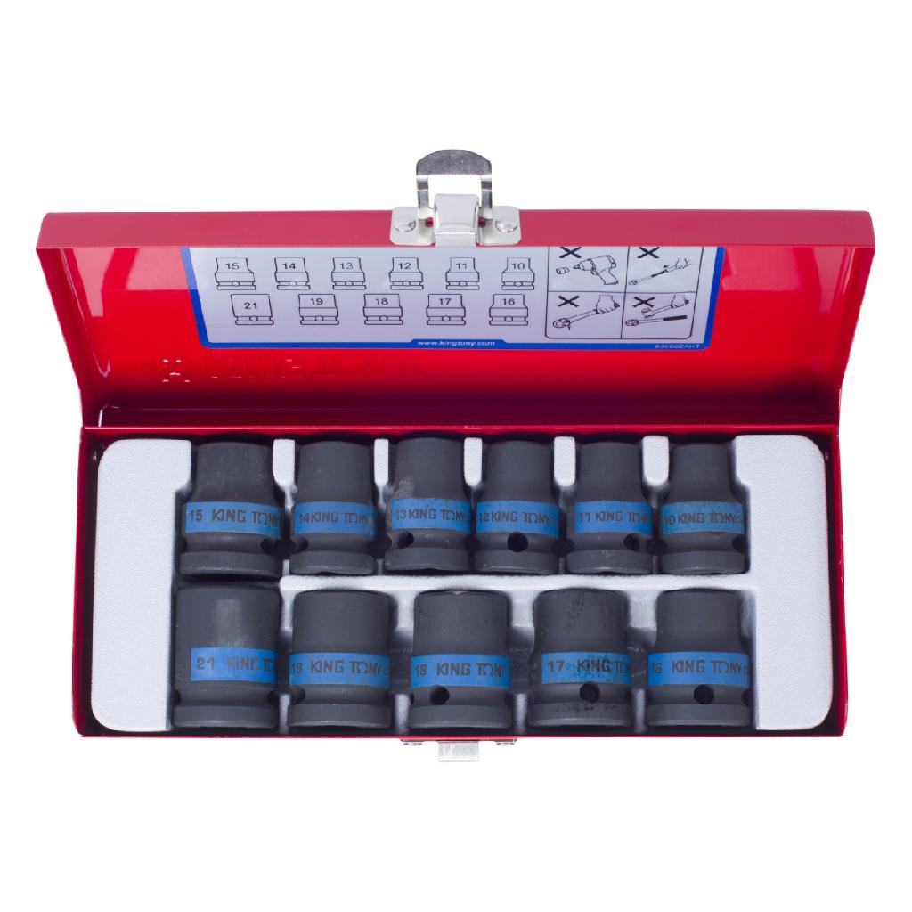 - Набор ударных торцевых головок 1/2", шестигранные, 10-21 мм, 11 предметов KING TONY 4412MP