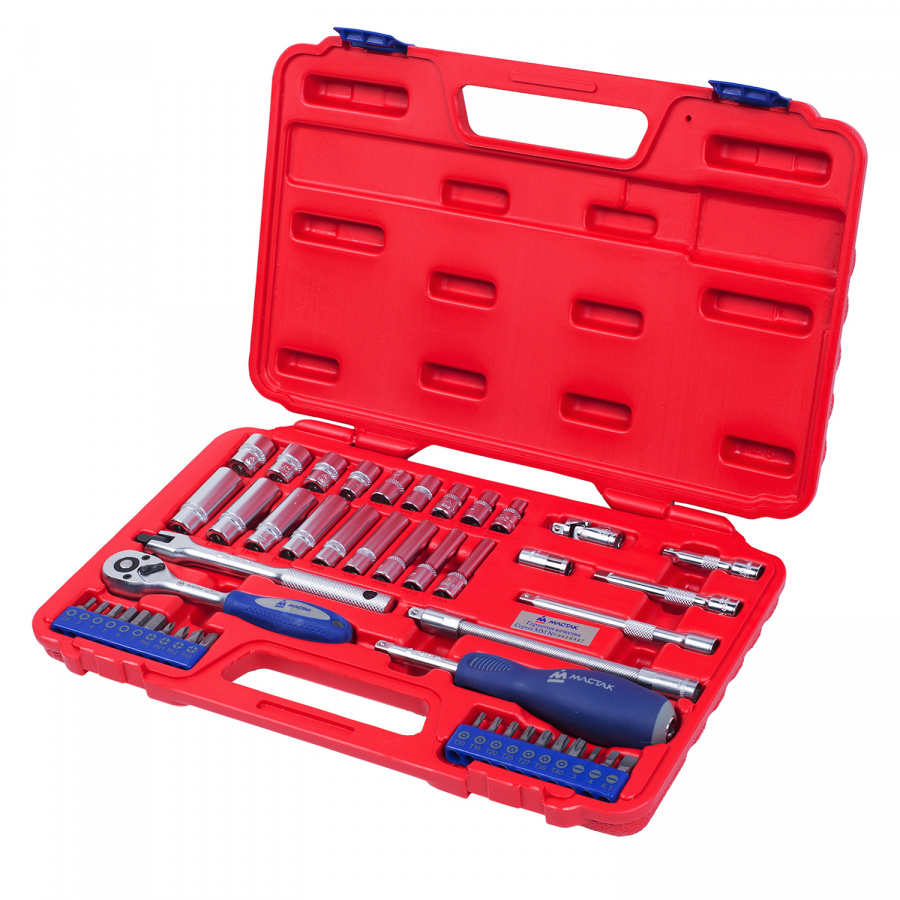 - Набор МАСТАК торцевых головок с принадлежностями 1/4", 41395 мм, 47 предметов