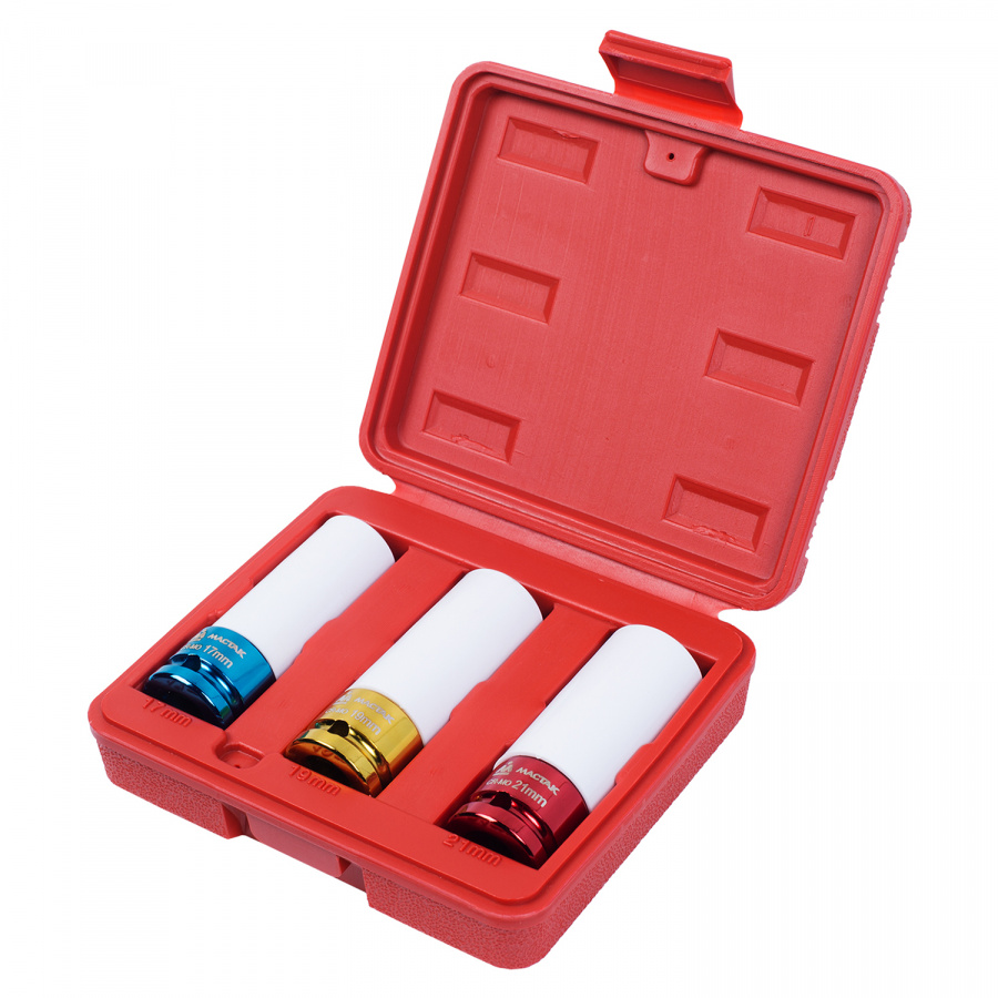 Набор МАСТАК ударных глубоких шестигранных головок 1/2", 17 19 21 мм, пластиковое покрытие, кейс,
