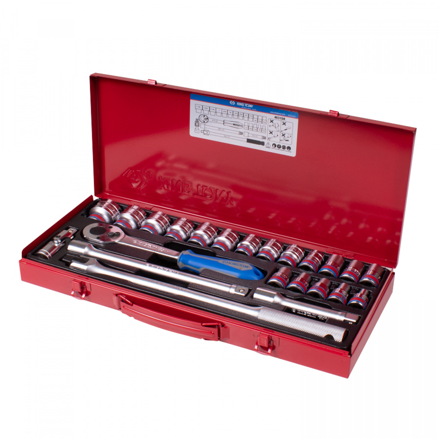 - Набор торцевых головок с принадлежностями 1/2", двенадцатигранные, 3/8-1&1/4", 23 предмета KING TONY