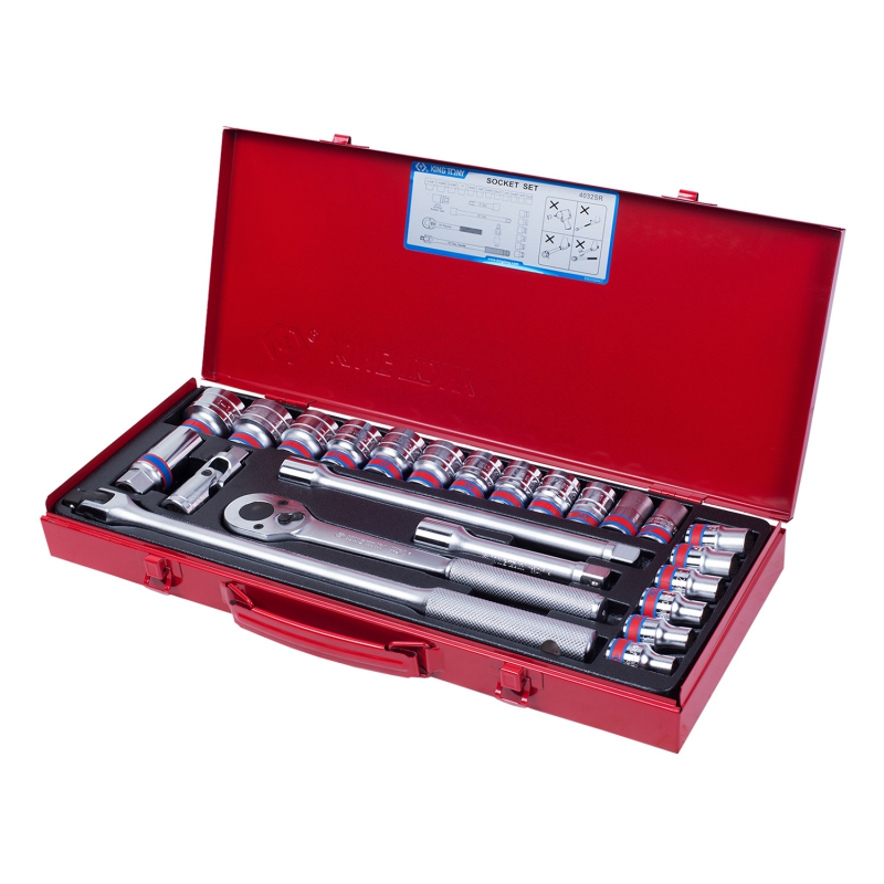 - Набор торцевых головок с принадлежностями 1/2", двенадцатигранные, 5/16"-1&1/4", 24 предмета KING TO