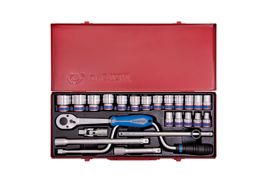 - Набор торцевых головок с принадлежностями 1/2", шестигранные, 10-32 мм, 24 предмета KING TONY 4325MR