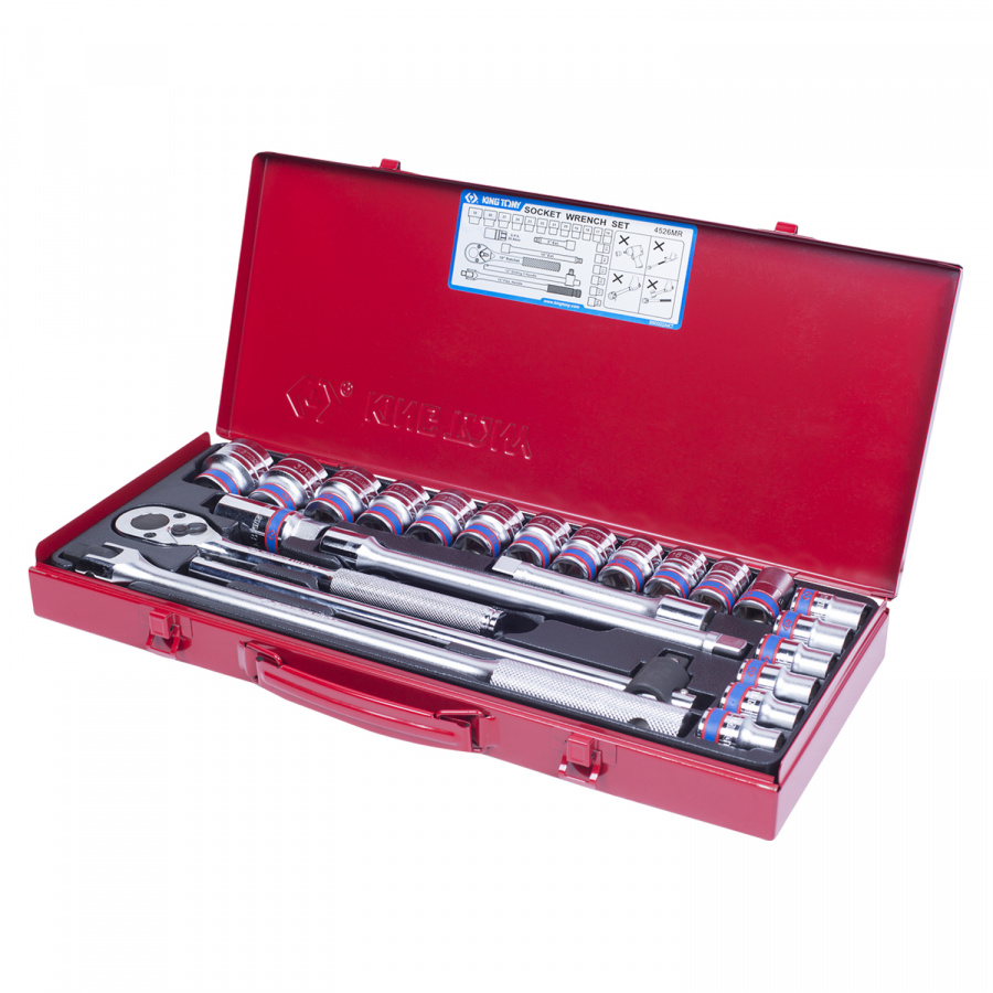 - Набор торцевых головок с принадлежностями 1/2", шестигранные, 10-32 мм, 24 предмета KING TONY 4526MR