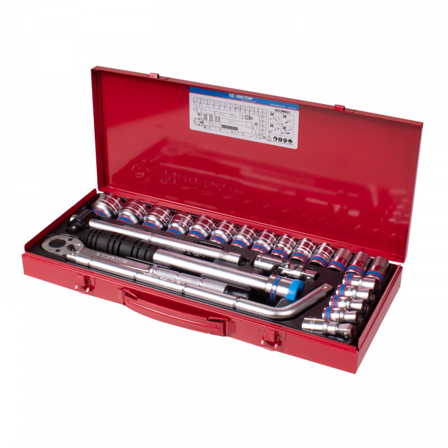 - Набор торцевых головок с принадлежностями 1/2", шестигранные, 10-32 мм, 24 предмета KING TONY 4533MR
