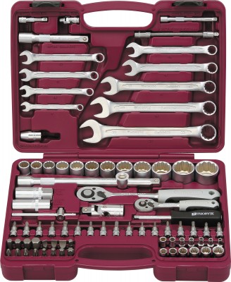 - Набор инструмента универсальный 1/4", 1/2"DR с головками торцевыми 12-гранными, 82 предме