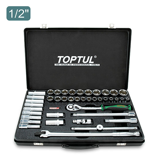 Набор TOPTUL головок и аксессуаров 1/2" 12-гранных 8-32 мм, 41 предмет в метал. кейсе