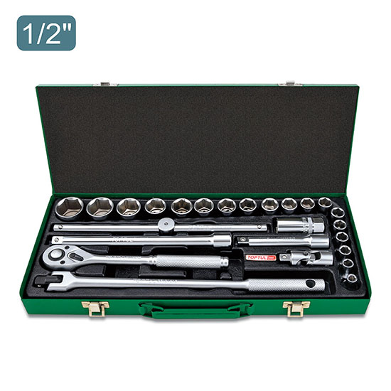 Набор TOPTUL головок и аксессуаров 1/2" 12-гранных 8-32мм, 25 предметов в метал. кейсе