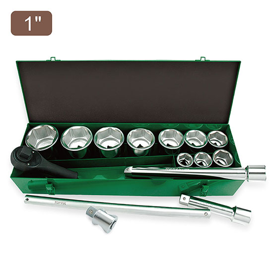 Набор TOPTUL головок и аксес 1"6-гран 36-80 мм,14 предм в метал.кейсе