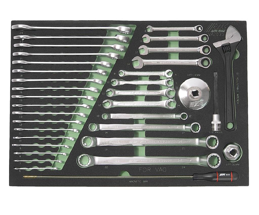 - Набор инструментов 35 предметов слесарно-монтажный (VAG) в ложементе JTC