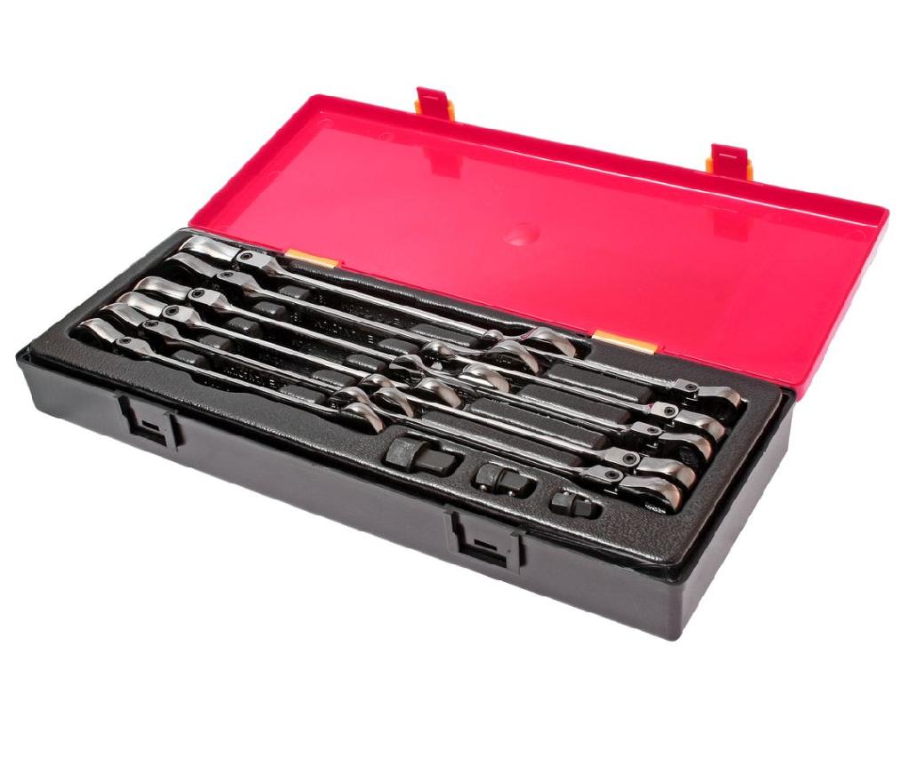 Набор ключей комбинированных трещоточных 8-19мм с подвижной головкой 14 предметов в кейсе JTC