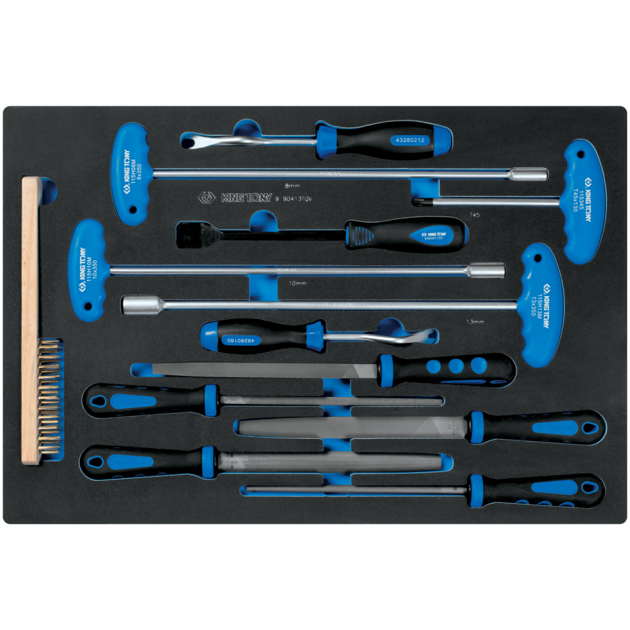 Набор KING TONY напильников, торцевых отверток, съемники клипс и металлическая щетка, ложемент, 13 п