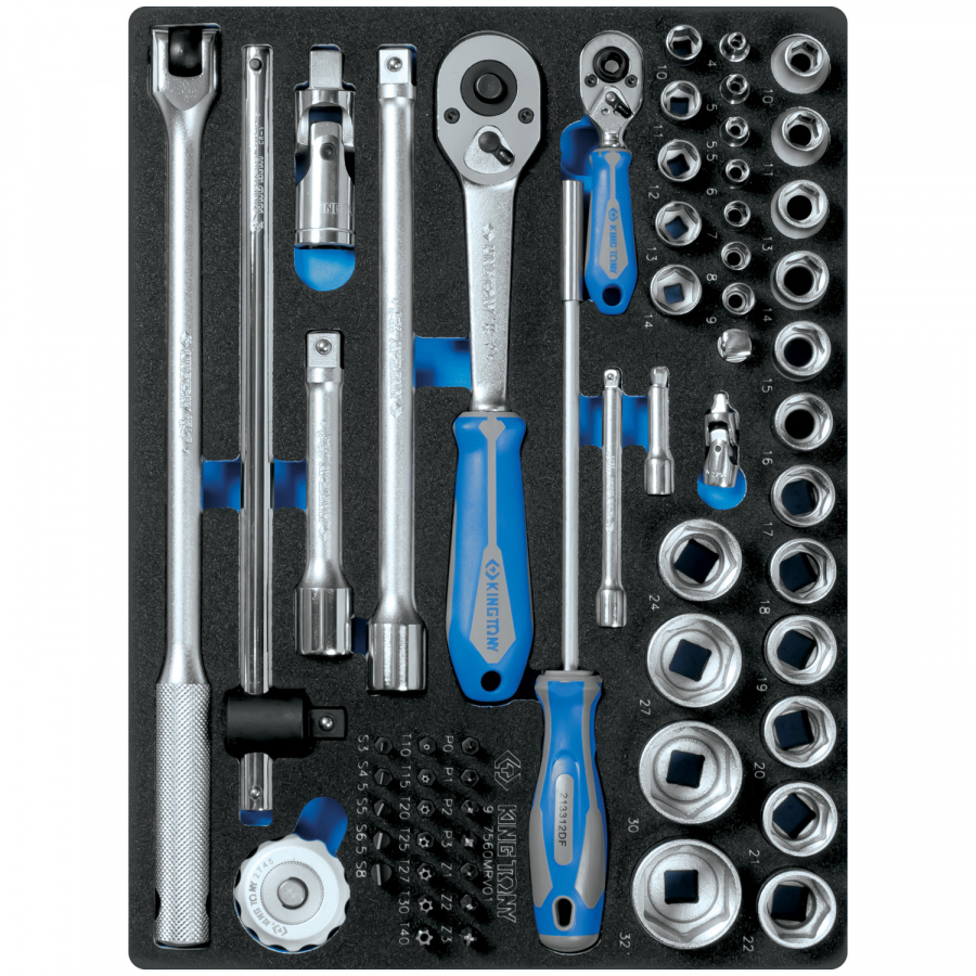 - Набор King Tony торцевых головок 1/2 и 1/4 с трещотками, принадлежностями, 60 предметов, ложемент