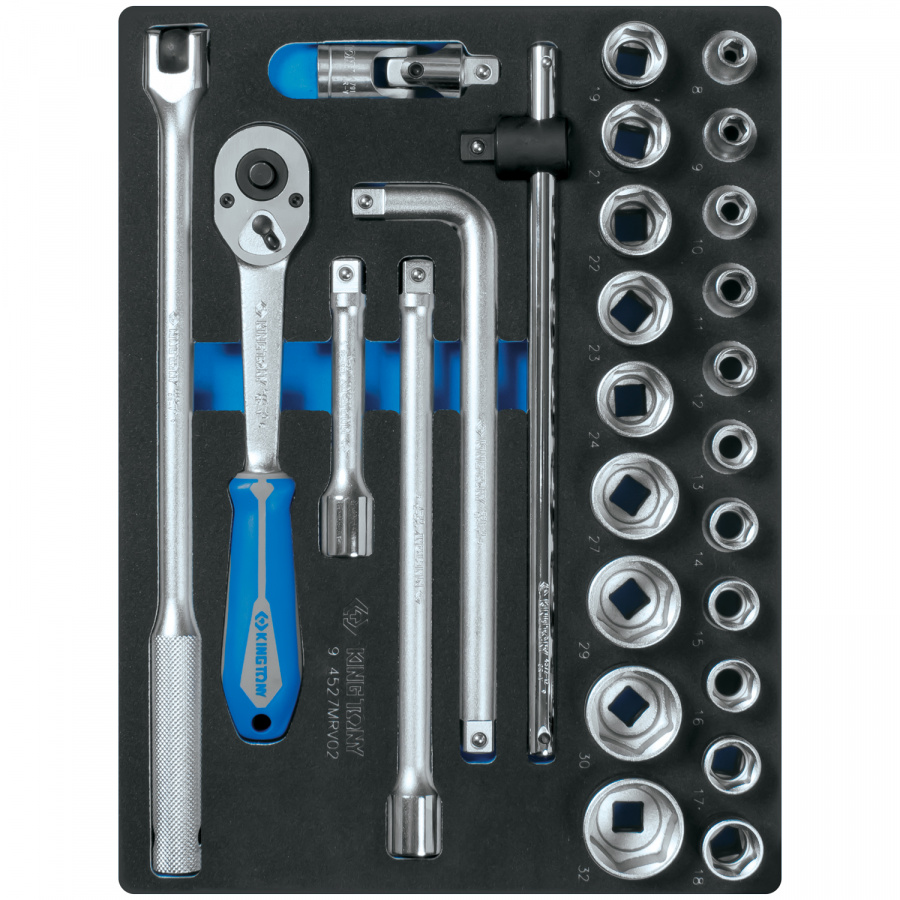 - Набор торцевых головок 1/2" с принадлежностями, ложемент, 27 предметов KING TONY 9-4527MRV02