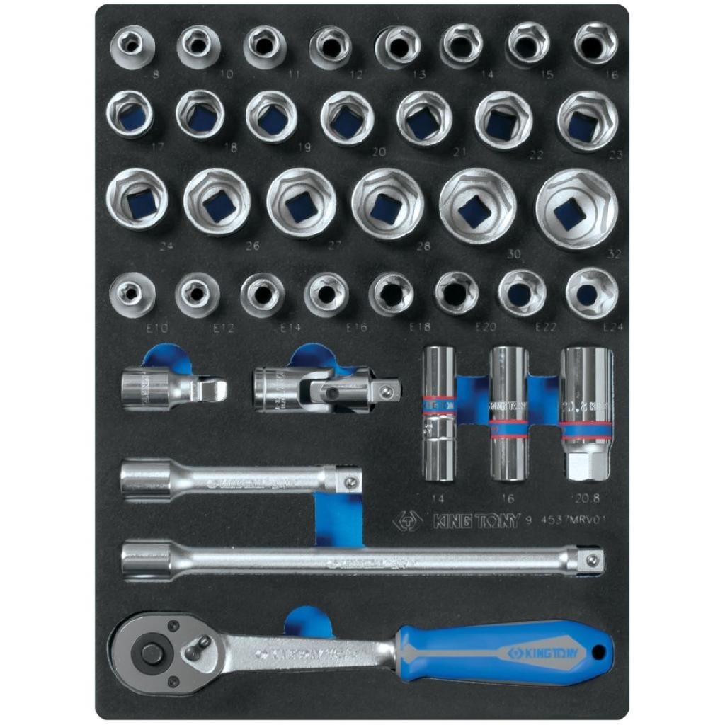 Набор торцевых головок 1/2" с принадлежностями, шестигранные, ложемент, 37 предметов KING TONY 9-453