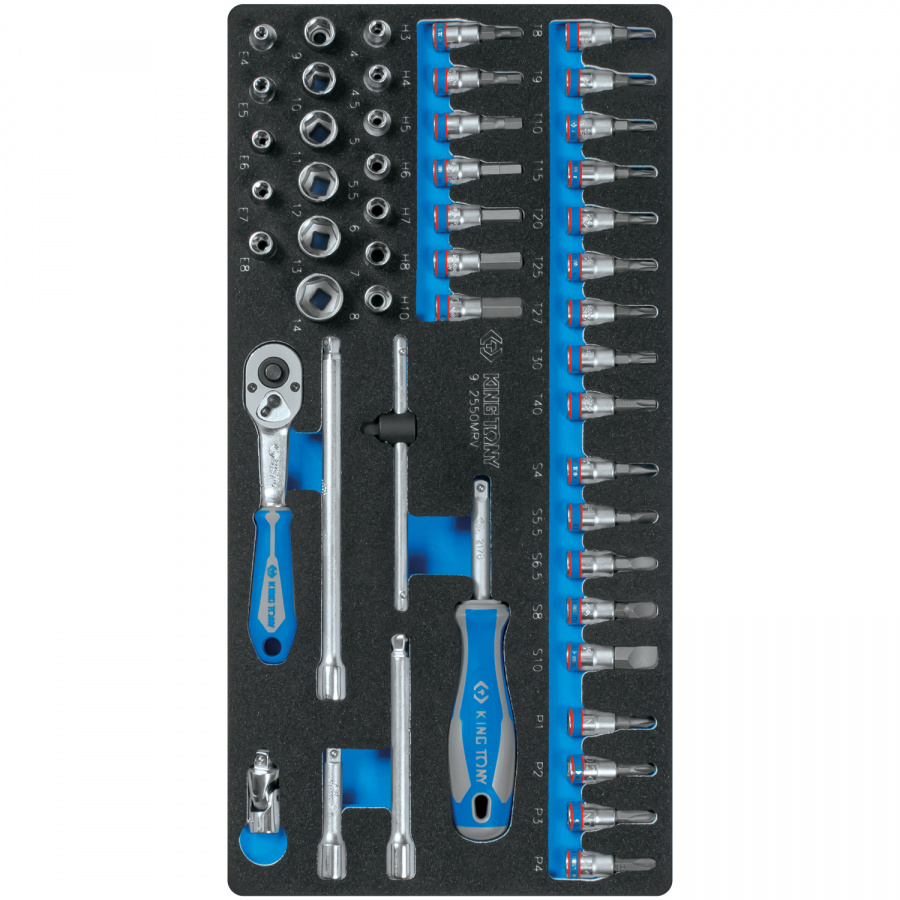 - Набор торцевых головок 1/4" с принадлежностями, ложемент, 50 предметов KING TONY 9-2550MRV