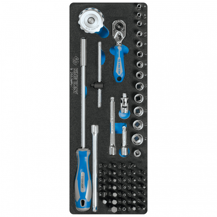 - Набор торцевых головок 1/4" с принадлежностями, ложемент, 55 предметов KING TONY 9-2553MRV01