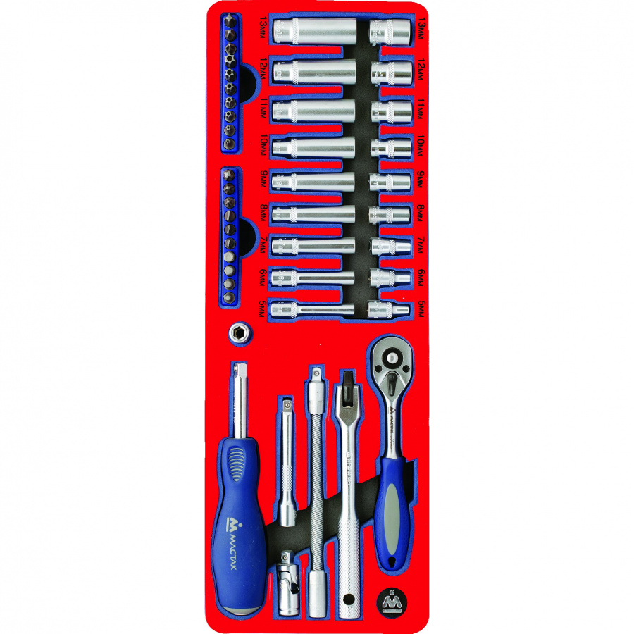 Набор торцевых головок 1/4” с принадлежностями MACTAK, 45 предметов