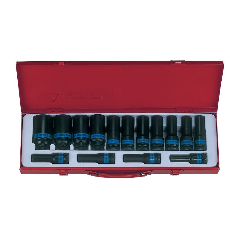 - Набор ударных глубоких торцевых головок 1/2", шестигранные, 10-32 мм, 15 предметов KING TONY 4415MP0