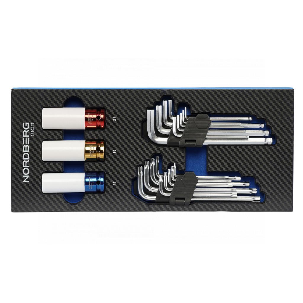- Набор шестигранных ключей и ударных головок NORDBERG 21 предмет в ложементе