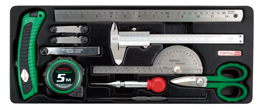 - Набор TOPTUL инструментов для измерения, маркировки, резки, 11 предметов в ложементе