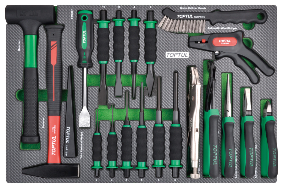 - Набор TOPTUL инструментов, молотки, выколотки и губцевый, 21 пр. в мягком ложементе
