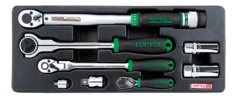 Набор TOPTUL динамометрический трещоток 1/4", 3/8", 1/2", ключ 3/8" 20-110 Нм, переходники и свечные