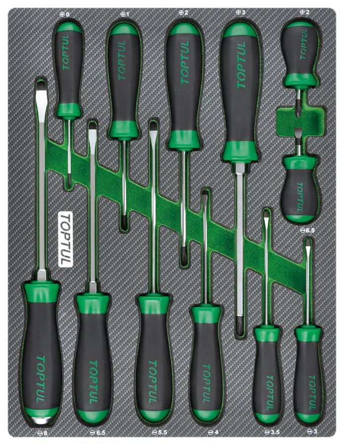 Набор TOPTUL отверток крест и шлиц, 12 пр., в мягком ложементе