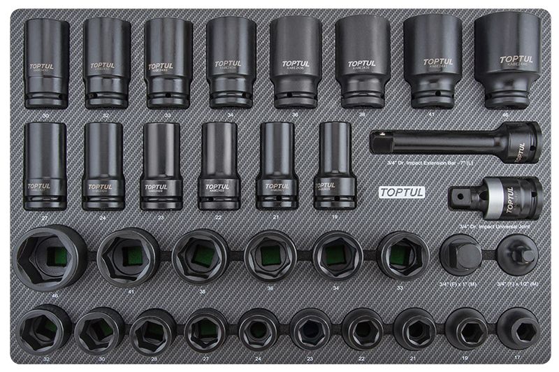 Набор TOPTUL ударных головок 3/4'' 17-46 короткие и длинные, 34 пр. в мягком ложементе (D)