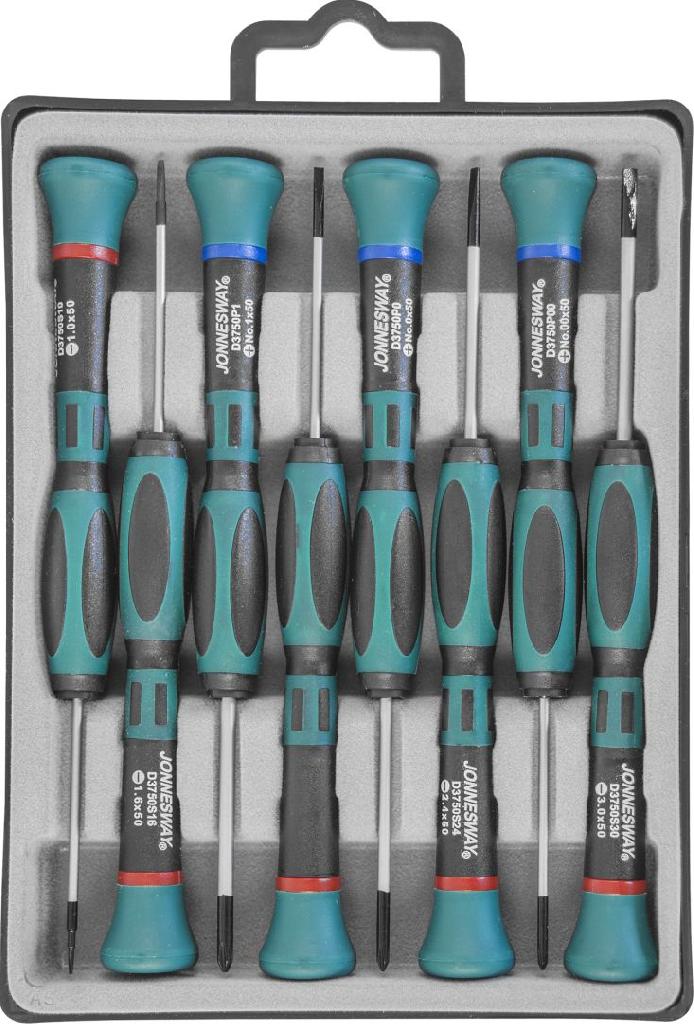 ОписаниеНабор отверток "D3750P08S" применяется для проведения точных работ со всеми видами крепежа, имеющего внутренний рабочий профиль SL и PH.