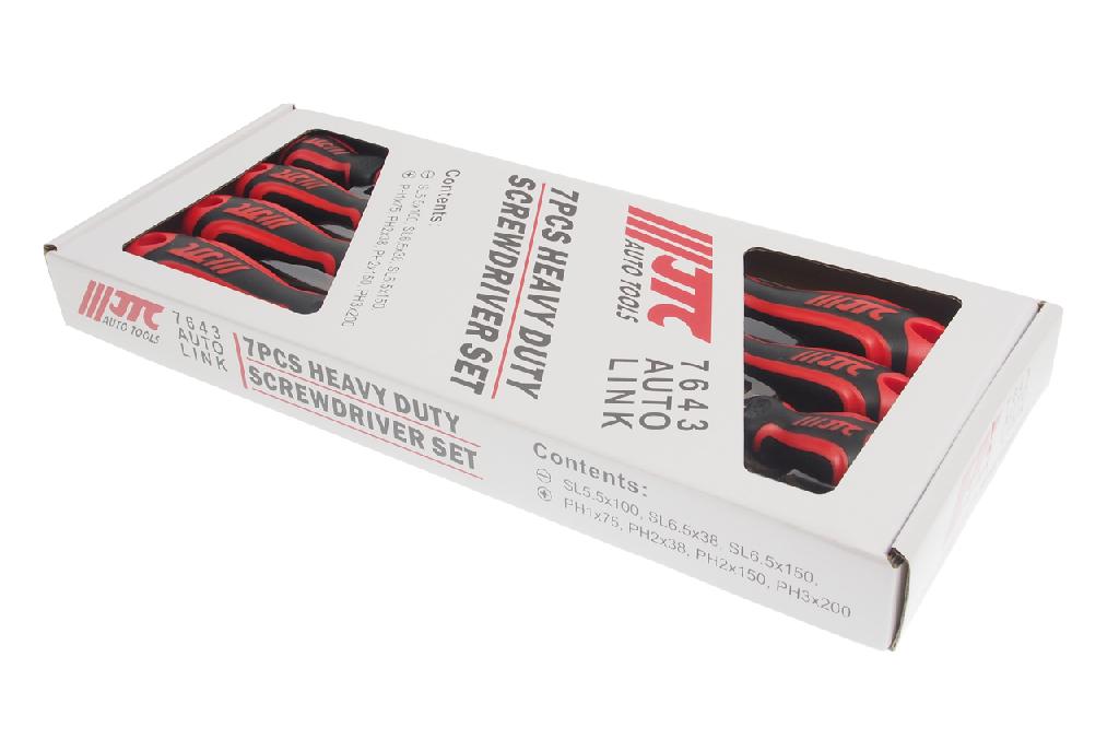 Набор отверток усиленных SL5.5x100 SL6.5x38 SL6.5x150 PH1x75 PH2x38,150 PH3x200 7 предметов JTC