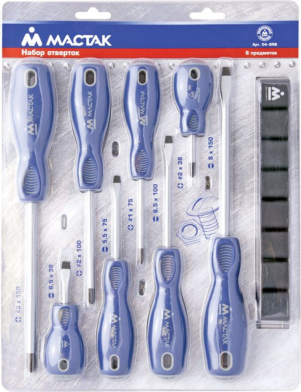 - Набор МАСТАК отверток с держателем, 8 предметов