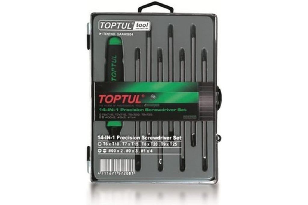 Набор TOPTUL отверток для точных работ 14в1 (TORX, PH, SL), 8 предметов в кейсе