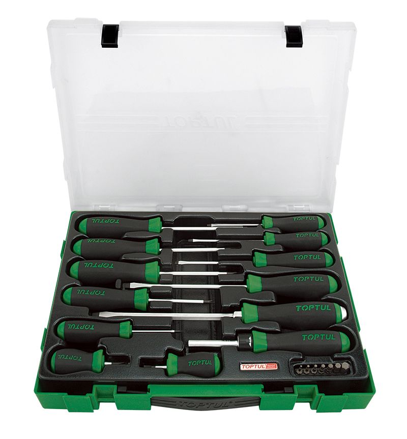 - Набор TOPTUL PZ, отверток и бит (PH, SL, Hex, SQ), 20 предметов в кейсе