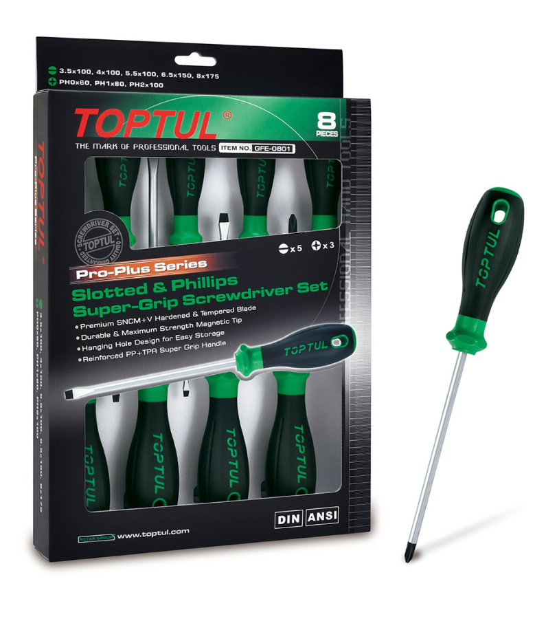 - Набор TOPTUL отверток (крест и шлиц) в картоне 8 пр. серии Pro-Plus