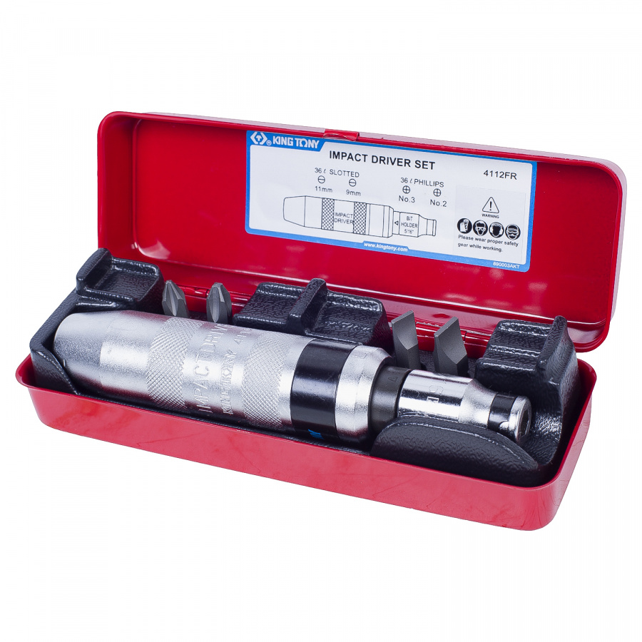 - Отвертка ударная с принадлежностями 5/16", 6 предметов KING TONY 4112FR