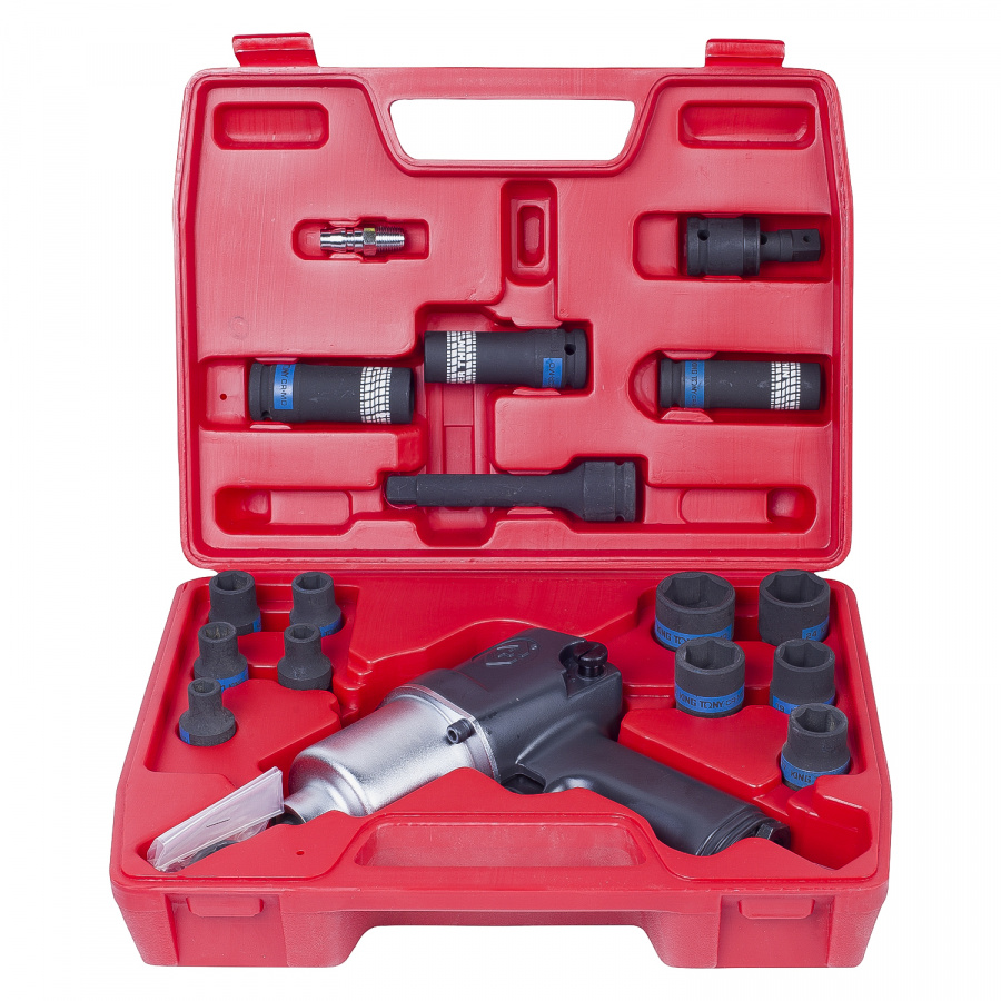 - Гайковерт KING TONY пневматический ударный 1/2", 678 Нм, с комплектом головок, 22 предмета
