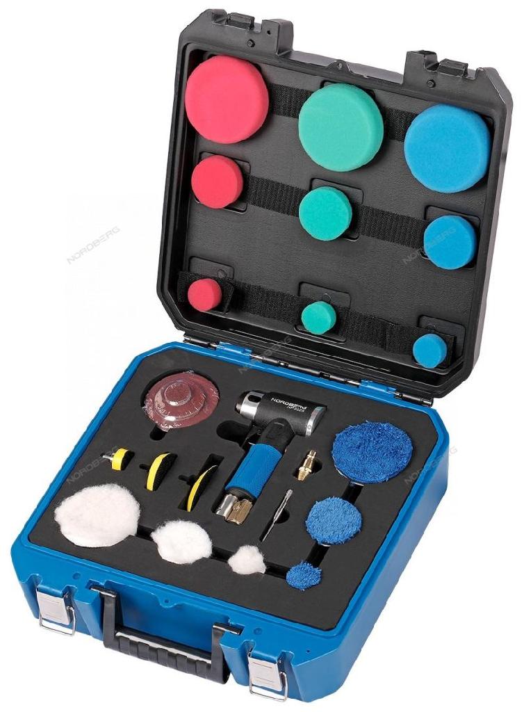 - Пневмошлифмашинка Nordberg угловая орбитальная, эксцентрик, с насадками, диам. 25, 50, 75 мм
