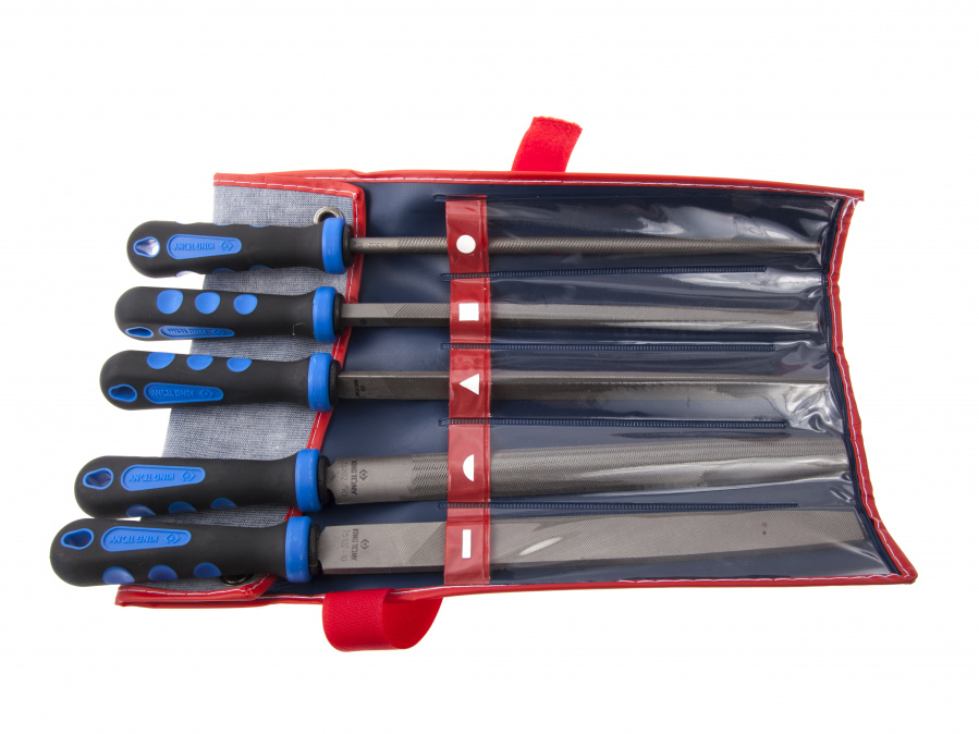- Набор KING TONY напильников 250 мм, двухкомпонентные рукоятки, 5 предметов