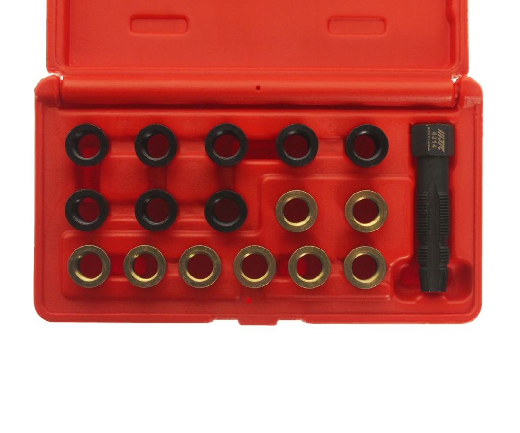 - Набор инструментов для восстановления резьбы свечей зажиг. (втулки M12х1.25,L=12.7мм,19мм) 16шт. JTC