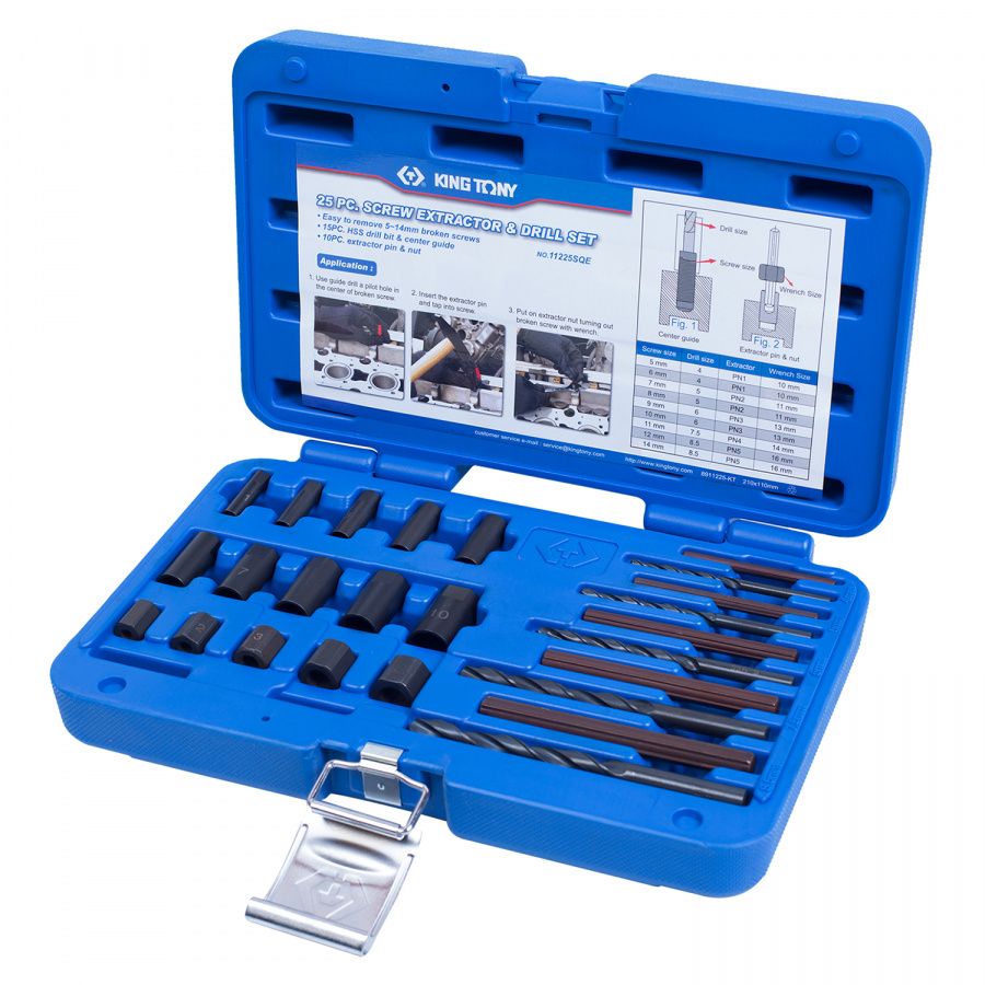 Набор KING TONY экстракторов и сверел, 25 предметов
