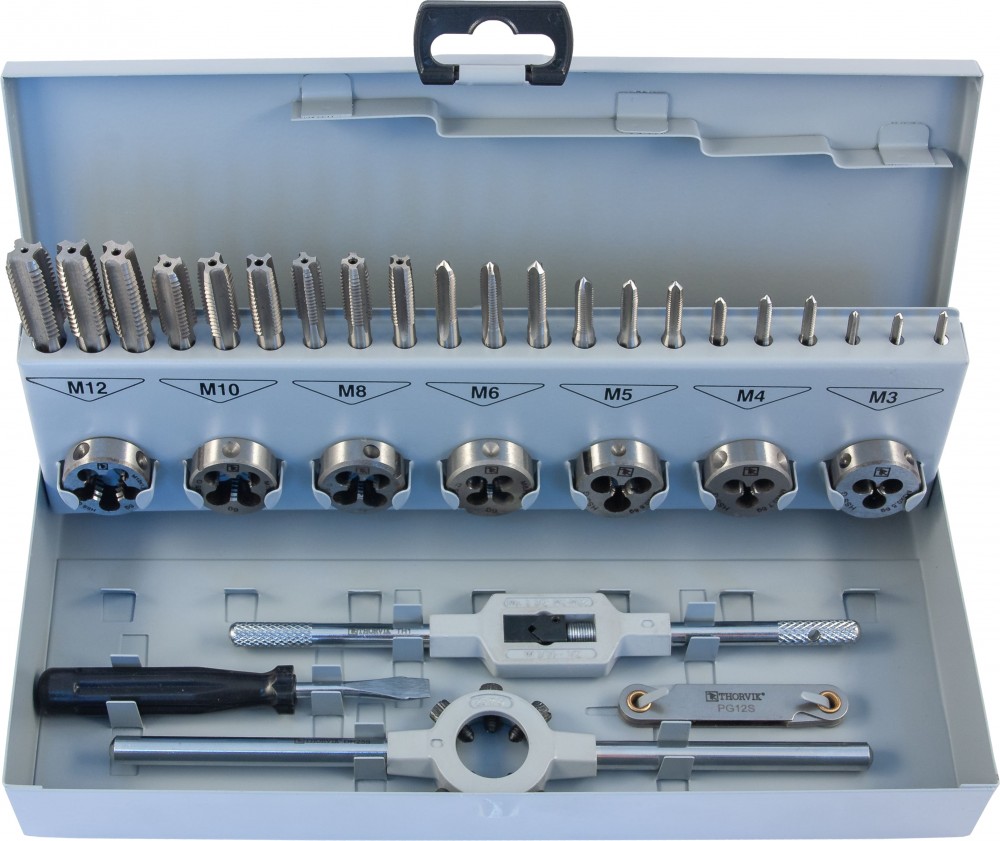 MTDS32 Набор метчиков трехпроходных ручных универсальных и плашек круглых ручных серий COMBO М3-М12,