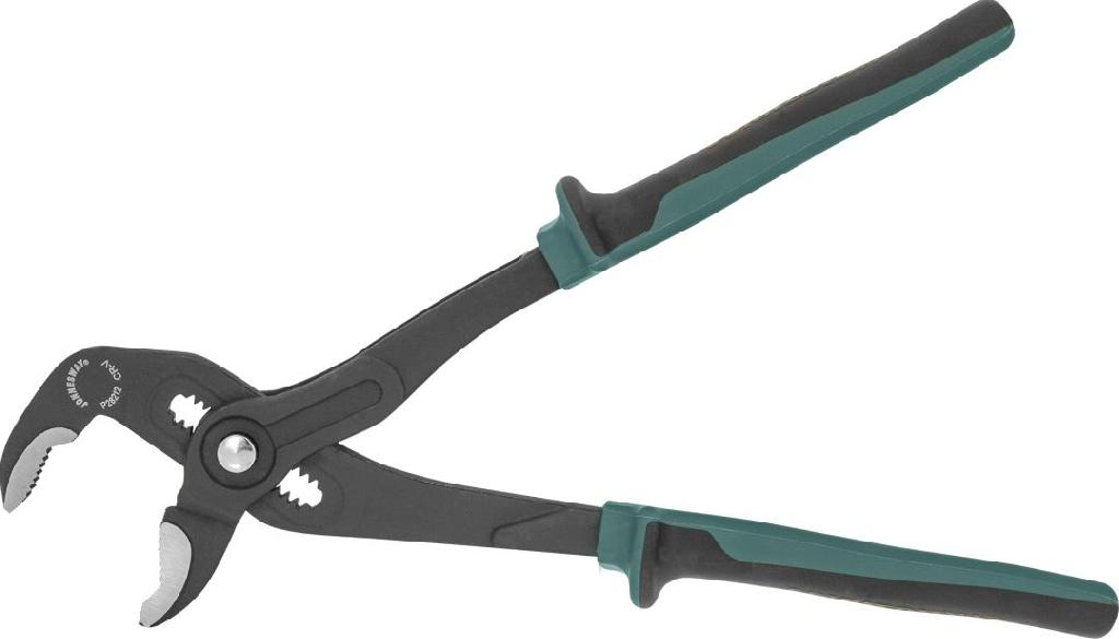 - Клещи Jonnesway переставные с реечной регулировкой и коробчатым захватом, двухкомпонентные рукоятки,