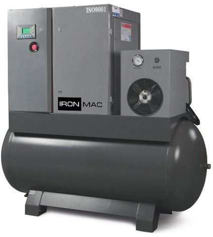 - Компрессор винтовой IRONMAC IC 15/10 AM DF 500L с осушителем. 10 бар. Пр-ть 1,55 м³/м. 500 л. 11 кВт