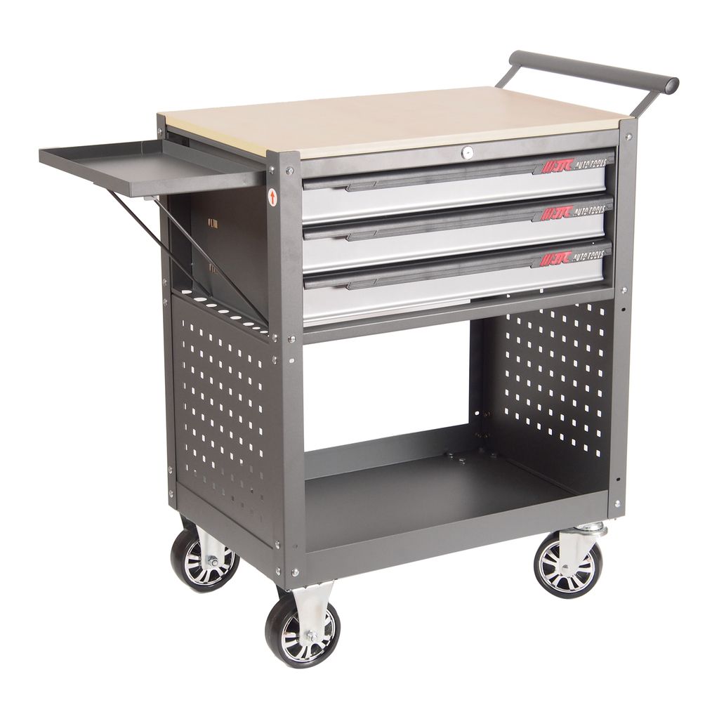 Тележка инструментальная 3 секции серая с открытым отсеком JTC