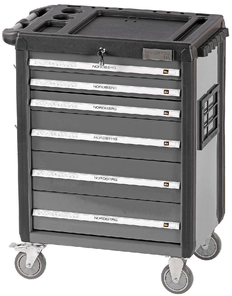 - Тележка Nordberg инструментальная, 6 выдвижных ящиков, серая
