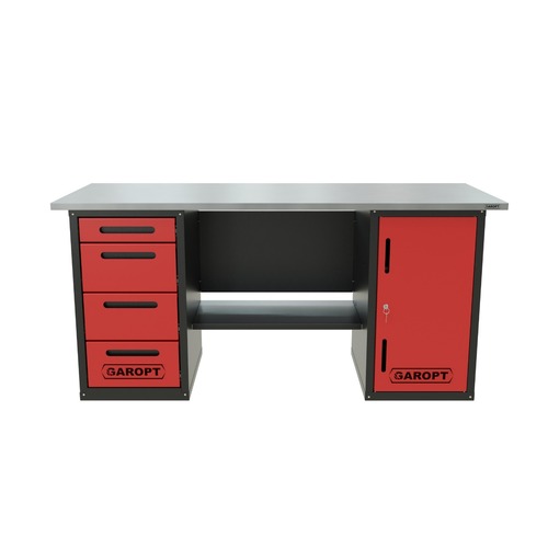 Garopt GT1800DY4 – двухтумбовый слесарный верстак с полкой и 4-мя ящиками для удобной работы в гараже, автосервисе, различных производственных мастерских и цехах, учебных заведениях.