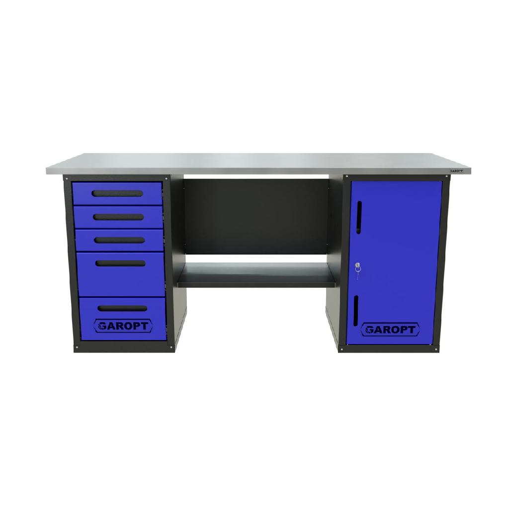 Верстак GAROPT двухтумбовый для слесарных работ с полкой и пятью ящиками GT1800DY5.blue