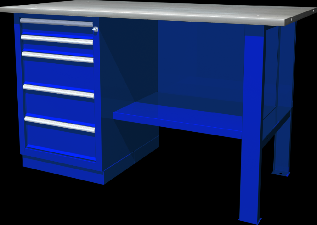 - Верстак с одной тумбой, тумба с 5 ящиками, 1390х686х820 мм